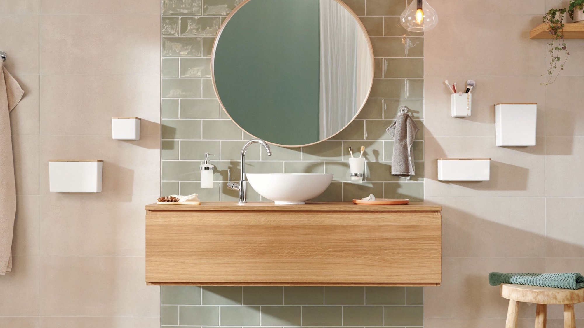 Výhodné a praktické úložné řešení do koupelny s technologií tesa® Powerstrips Waterproof. Při montáži není třeba vrtat, vše zajišťuje lepicí systém. Středně velký box tesa® Baboo se šikovnou přepážkou se výborně hodí pro přehledné ukládání šperků, kosmetických prostředků, vatových tyčinek a dalších nezbytností. Box je vyroben z kvalitního matného bílého plastu s přírodním bambusovým víkem, takže vypadá dobře v koupelnách všeho druhu a stylu.