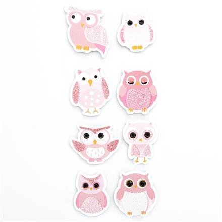 Brokátové 3D samolepky – moudrá sova, 8 ks – růžová