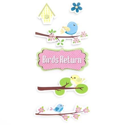 Brokátové 3D samolepky – návrat ptáčků, 6 ks