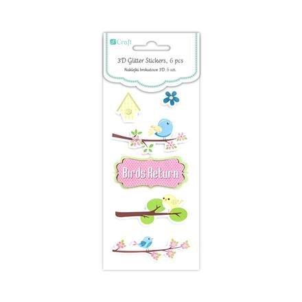Vrstvené, brokátové samolepky s motivem ptáčků. Ideální ke zdobení kreativních projektů, jako jsou alba, pohlednice, krabice, obaly, dekorativní dárková balení a mnoho dalších. Množství v balení: 6 ks.