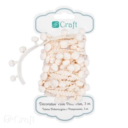 Dekorační stuha s bambulkami ja ideální k vlastnoruční výrobě bižuterie, oděvních a bytových dekorací, vlasových doplňků, stejně jako k ozdobě pohlednic nebo při výrobě alb. Délka: 3m.