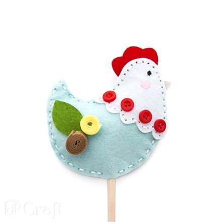 Kreativní sada, díky níž si můžete vyrobit krásnou slepičku na špejli. Díky dlouhé špejli můžete slepičku umístit jako dekoraci do květináče, do vázy nebo ji využít jako loutku při hře na divadlo. V sadě najdete plastovou jehlu, která je bezpečnější pro děti. Spojte dohromady všechny prvky, jak je ukázáno v návodu a je hotovo! Sada obsahuje filcové dílky, samolepicí pohyblivé očko, dřevěnou špejli, plastovou jehlu, nit a lepidlo. Ideální jako dárek nebo pěkná dekorace.