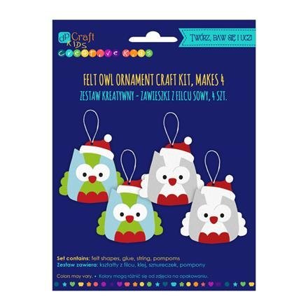Kreativní sada, díky které si můžete s dětmi vytvořit filcové sovičky s poutkem k zavěšení na vánoční stromeček či kamkoliv jinde.