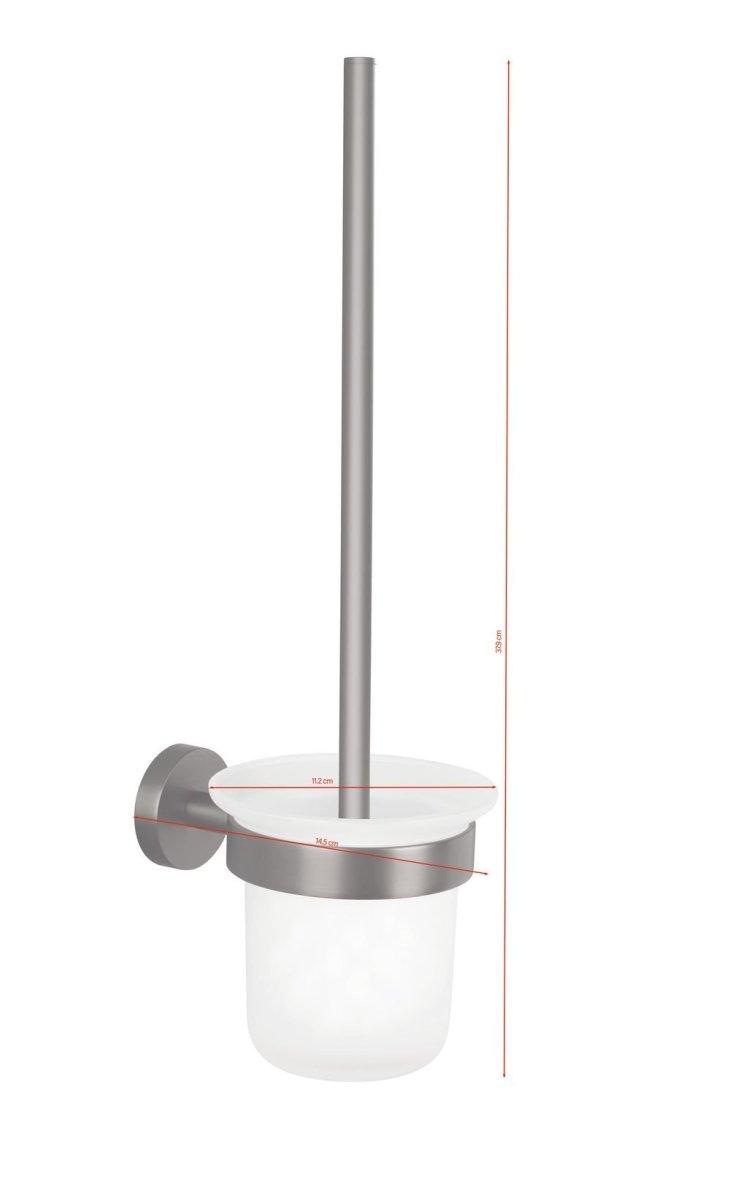 \* Harmonicky zaoblený, organický design, metalický grafitový kov s PVD povlakem, nerezový, nádobka na kartáč z matného skla