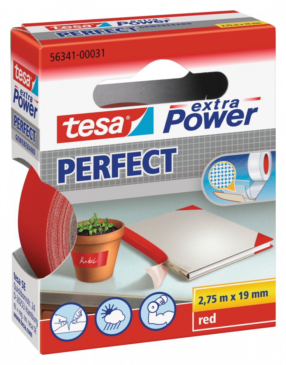 tesa Extra Power® Perfect je prémiová řada vysoce odolných opravných pásek pro uživatele, kteří kladou důraz na kvalitu a jednoduchost. Páska je vyrobena za pomoci velmi husté textilie a kvalitního lepidla, které zaručuje profesionální výsledky při opravách, modernizaci a údržbě.