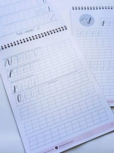 Obsahuje osvědčené rady a tipy, jak začít s moderní kaligrafií pro malé štětcové fixy. Má 41 stran, které Vás provedou kompletními základy moderního brush letteringu – čili psaní se štětcovými fixy. V písance najdete základní tahy, abecedu s malými i velkými písmeny, dny v týdnu, názvy měsíců.. dále se naučíte, jak spojit jednotlivá písmenka a také si vytvoříte vlastní projekt.