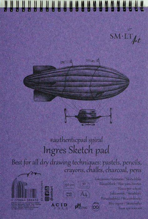 Blok A4 s přírodním bílým papírem Ingress. S bavlnou. Obsahuje 30 listů o gramáži 130 g/m2. Nejlepší pro pastely, tužky, pastelky, pera, křídy, uhel. Vnitřní papír neobsahuje dřevo, má dlouhou životnost a neutrální pH. S obalem z přírodního barevného kartonu, tvrdým hřbetem, mikroperforovanými listy a spirálou na horní straně.