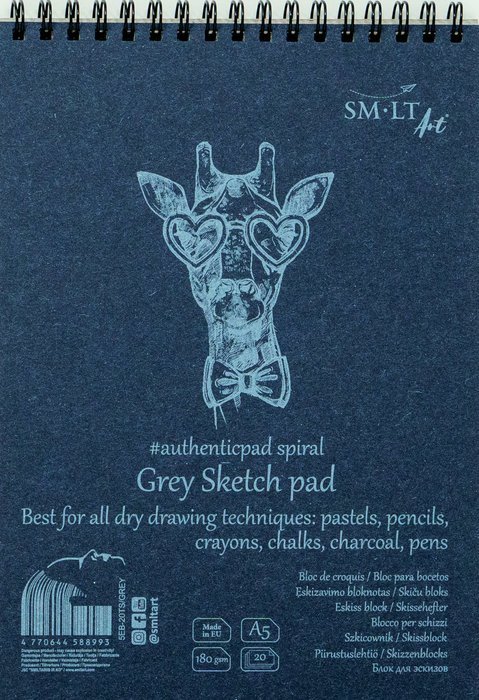 SMLT art Blok Authentic, šedý, A5, 20 listů, 180g/m2, spirála