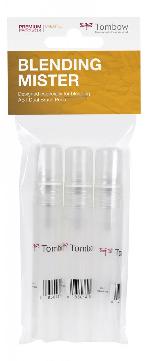 Tombow Blending Mister je praktický pomocník na miešanie farieb alebo vytváranie farebných prechodov. Plniacu kompaktnú fľaštičku môžete naplniť až 8 ml vody alebo inej kvapaliny. V hornej časti má tiež rozprašovač, takže môžete vodou jemne postriekať papier alebo zmiešanú paletu farieb. Tento nástroj je obzvlášť vhodný na použitie s obojstrannými štetcovými fixkami ABT Dual Brush Pens a tiež pre všetky ostatné atramenty na báze vody. Balenie obsahuje 3 ks.